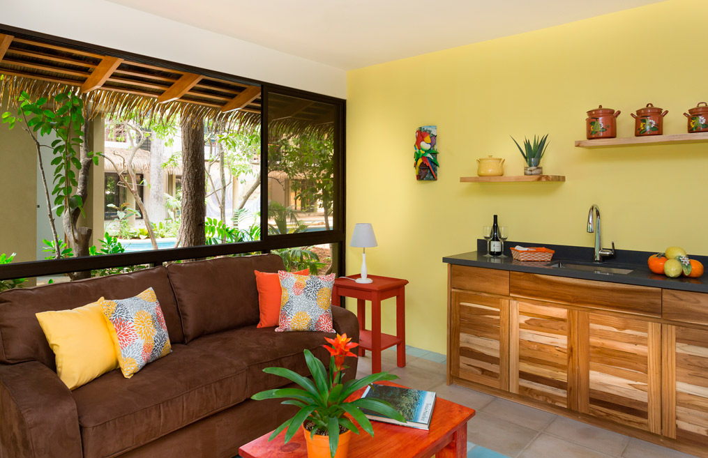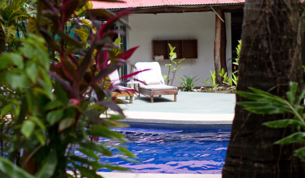 The Sunset Shack is a gorgeous small boutique hotel with 8 rooms, a cool refreshing pool and an awesome bar and restaurant (Al Chile) on site. Located just a short 4 min. Walk to the sands of Playa Guiones and a casual 7 min. Walk to Safari Surf’s facility. The location of this hotel is so perfectly situated right in the center of Playa Guiones that everything you would want or need is within a 5-10 min. Walk. The rooms have been recently renovated and are super comfy and cozy nestled up right against a local wildlife refuge. It’s all about location, location, location, with this relaxed beach beauty!